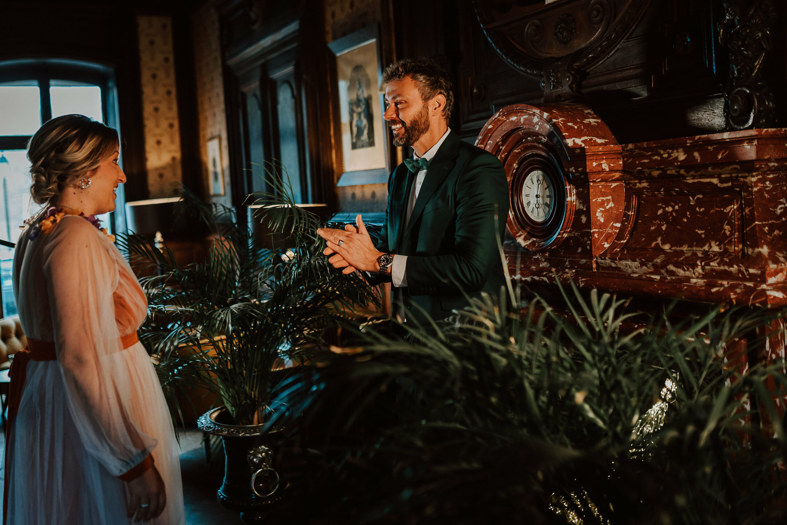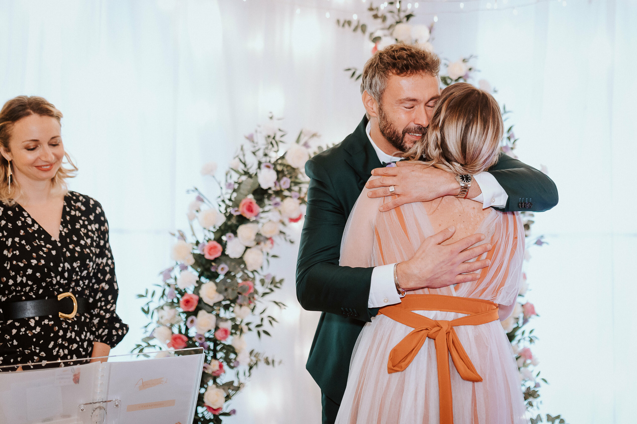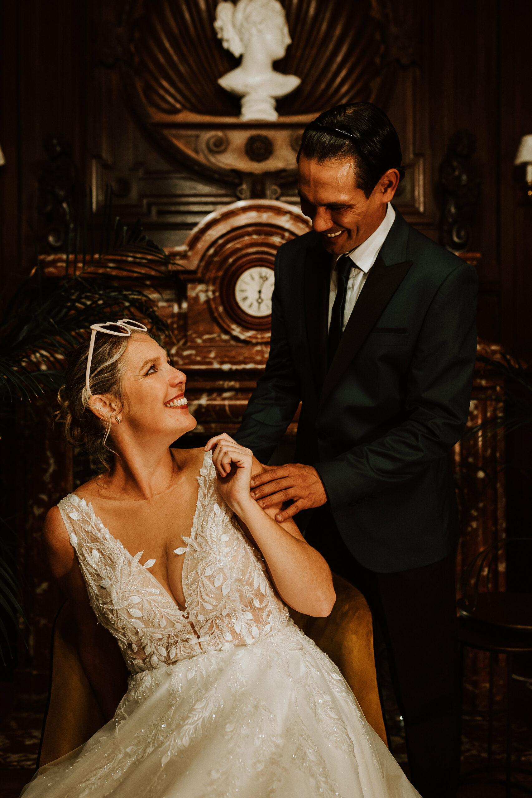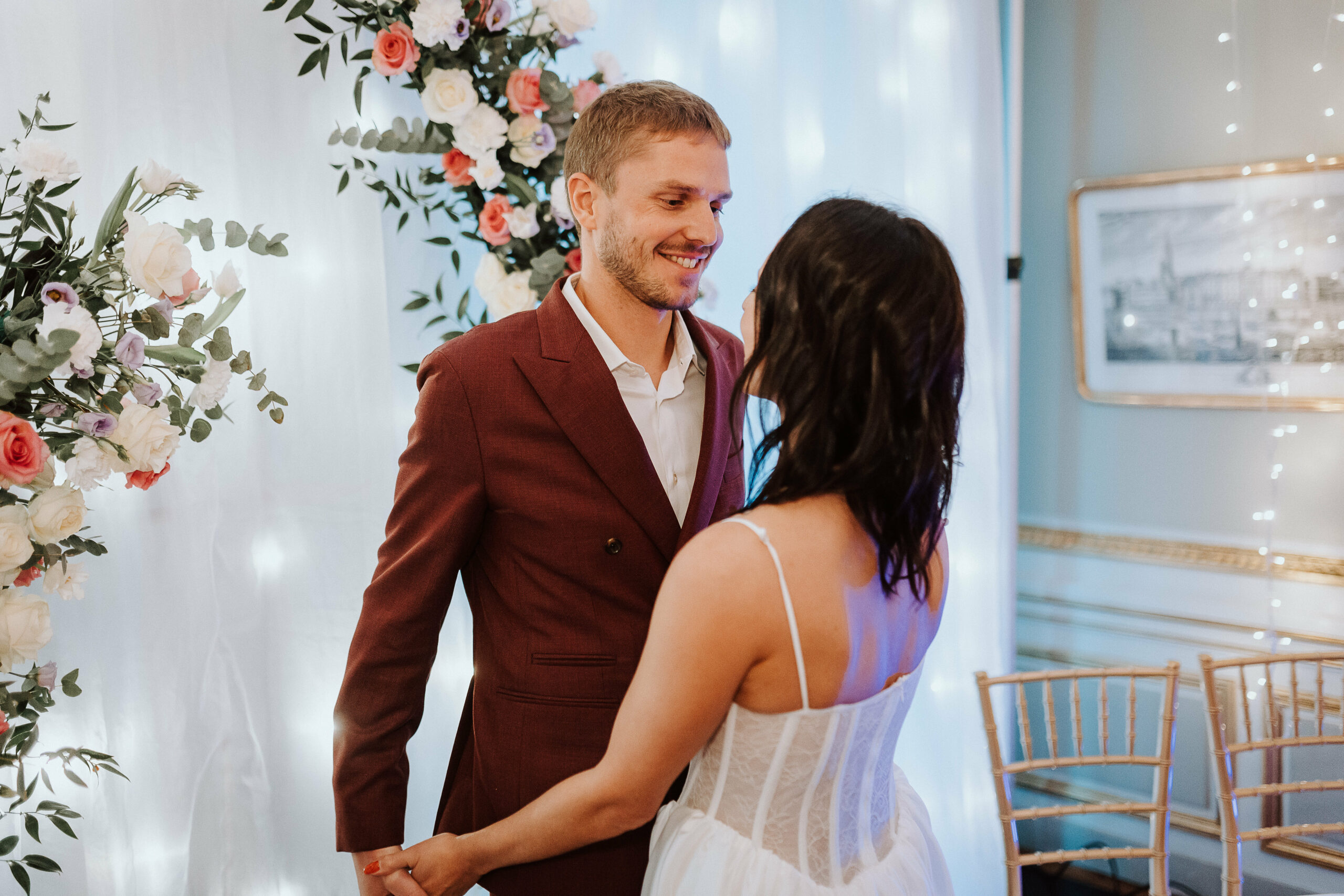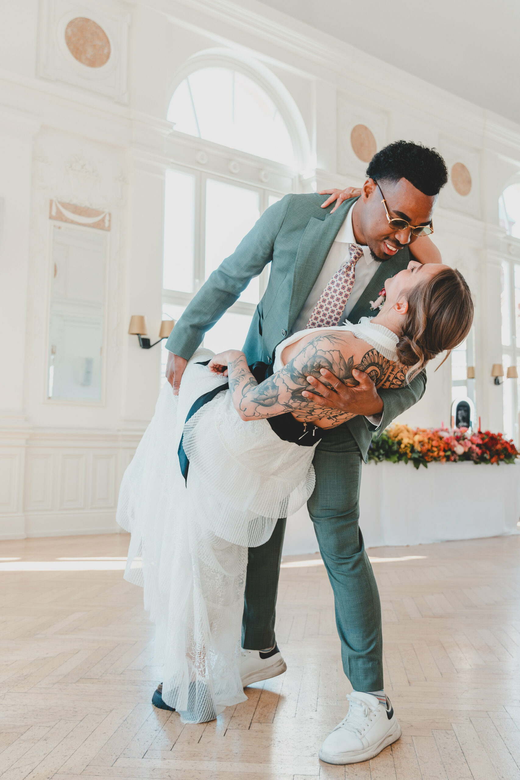 Enfilez une robe de mariée et un costume pour vivre pleinement l’émotion de ce moment.